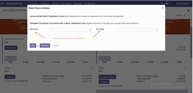 From this popup passing date parameter by method, which will be called while clicking on the Print button.