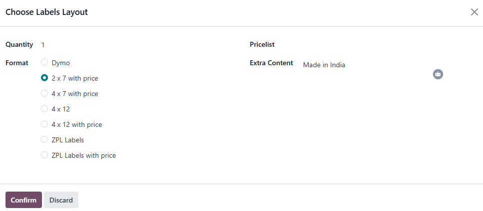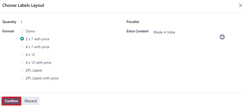 *Quantity refers to the number of labels that should be printed for a product.PriceList