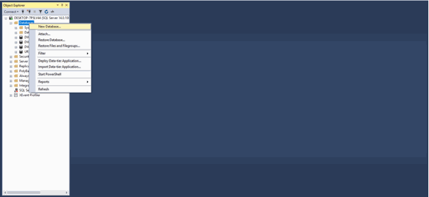 1. Open MSSQL Server and Create a new database: